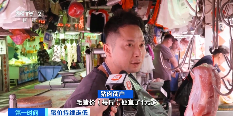 猪肉商户:毛猪价每斤便宜了1元多,零售价每斤便宜2元到3元。