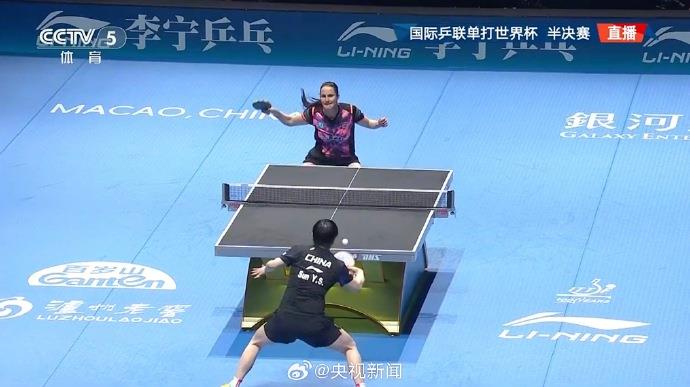 经济观察网 据央视新闻客户端消息,今天,国际乒联单打世界杯女单半决赛,孙颖莎4-0战胜德国选手莎宾·温特,顺利晋级决赛。四局比分为:11-6、11-6、11-3、11-5。今晚19:30,女单决赛,孙颖莎将迎战王曼昱和申裕斌之中的胜者。