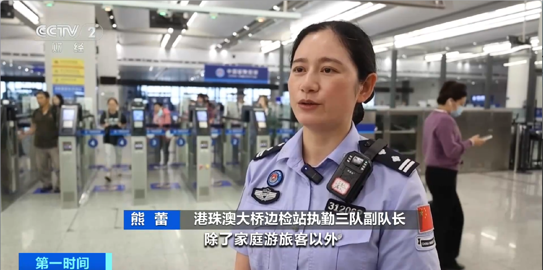 港珠澳大桥边检站执勤三队副队长 熊蕾:除了家庭游旅客以外,港澳团队游旅客数量也有明显增长,较往年相比增长约两成。