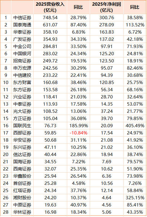 不过,国信证券(002736.SH)还未披露业绩,2025年前三季度,国信证券的营业收入为192.03亿元,其全年营业收入规模或能进入行业前十之列,可能会搅动排名格局。