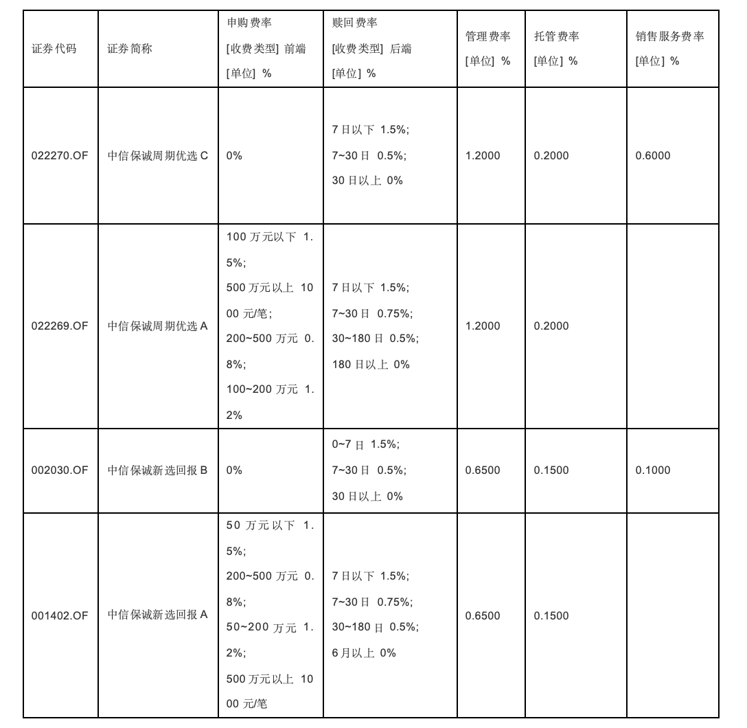 注:以下费率取自最近一期发布的招募说明书等法律文件,具体请以基金管理人或销售机构的公告为准。