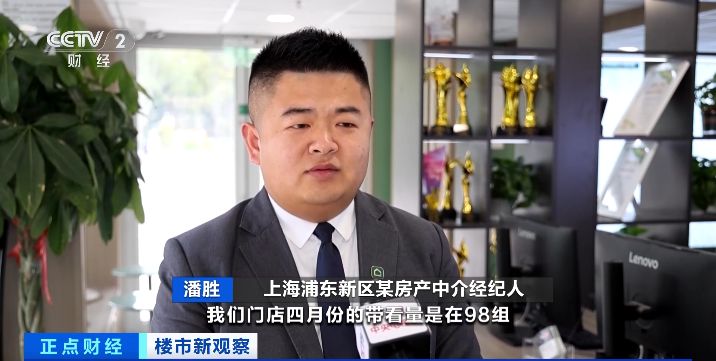 上海浦东新区某房产中介经纪人 潘胜:我们门店四月份的带看量是在98组,截止到6日,清明假期在55组左右。三月份我们店成交了12套,相比于一月份整体的量已经翻了一倍左右。