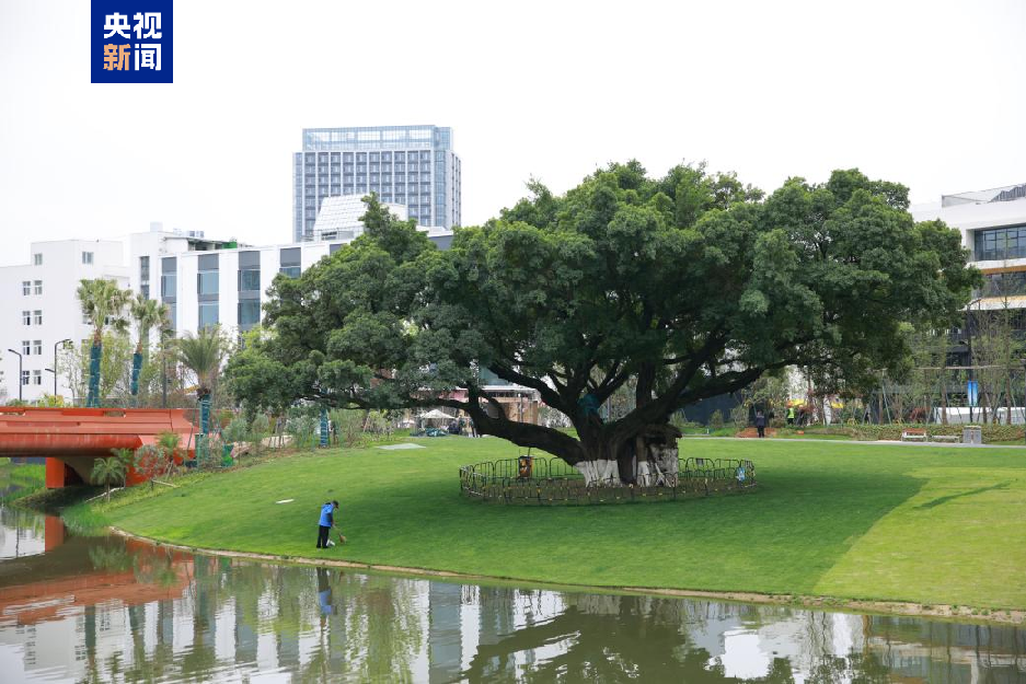 建设过程中,秉持生态优先、运营前置、节约集约等理念——统筹实施仙湖调蓄工程,将水利建设与园林景观有机融合,形成超800亩生态水系,构建会呼吸的生态景观综合体;坚持“为古树让路”,园内9株百年古榕树、655棵乔木全部原址保留;利用数字孪生技术预拼装,建筑机器人、重载无人机参与施工;盘活29.7万平方米老旧厂房,淤泥渣土就地回用。