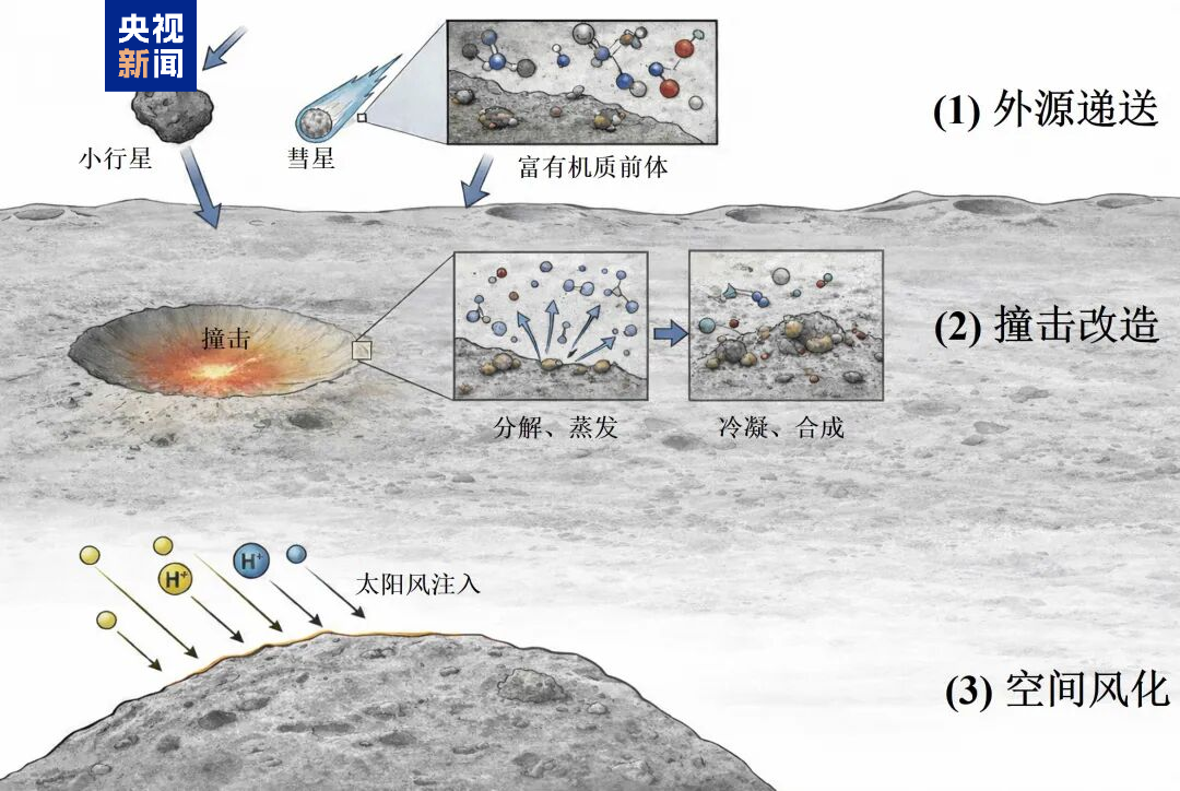 这项研究揭示了月壤有机质从外源输入、撞击重构到空间风化的连续演化过程,为理解小天体物质演化及太阳系早期有机质输送历史提供了新的研究基础,也为我国后续深空采样返回任务提供了重要的技术支撑。