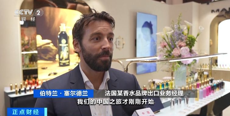 法国某香水品牌出口业务经理 伯特兰·塞尔德兰:我们刚刚进入中国市场,我们的中国之旅才刚刚开始,我们希望很快消费者就能在上海的香水店找到这些产品。