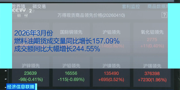 从3月份数据看,燃料油期货成交量同比增长157.09%,成交额同比大幅增长244.55%;铝期货成交额达到2.03万亿元,同比激增222.64%;碳酸锂期货成交量同比增长174.09%,成交额同比增长近4.7倍。