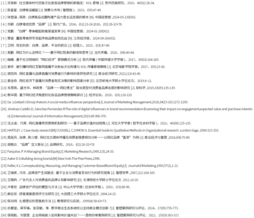 通过文献总结归纳发现,目前关于“白牌”产品的文献不多,网红营销实现品牌破圈的文献更是缺乏,目前文献集中在讨论和分析网红营销对企业品牌建设的影响,缺少对“白牌”产品提升品牌影响力、品牌认知度和认知质量的系统性和整体性研究,因此探究网红营销如何驱动白牌品牌化的破圈路径有着显著意义。