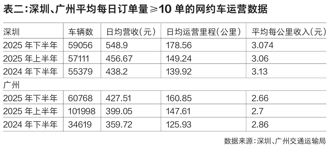 深圳、广州公布的网约车运营数据同样显示,2025年,当地司机通过显著延长运营里程来争取更高收入。