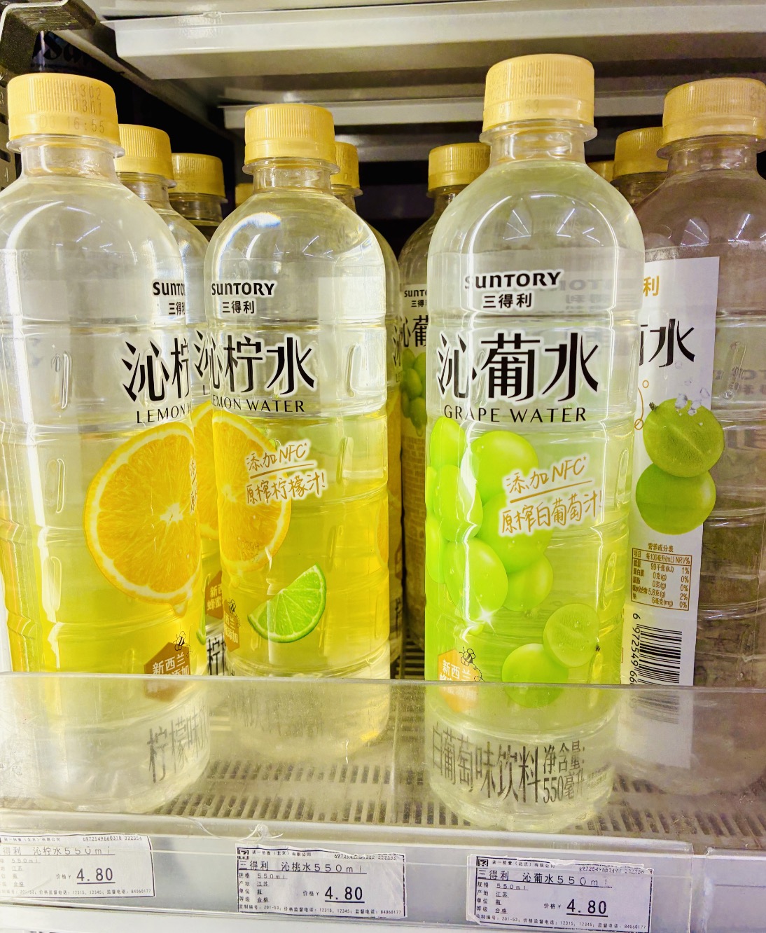按照一瓶550毫升的克重换算,一瓶三得利沁葡水中NFC白葡萄汁的含量约为27.5毫克。