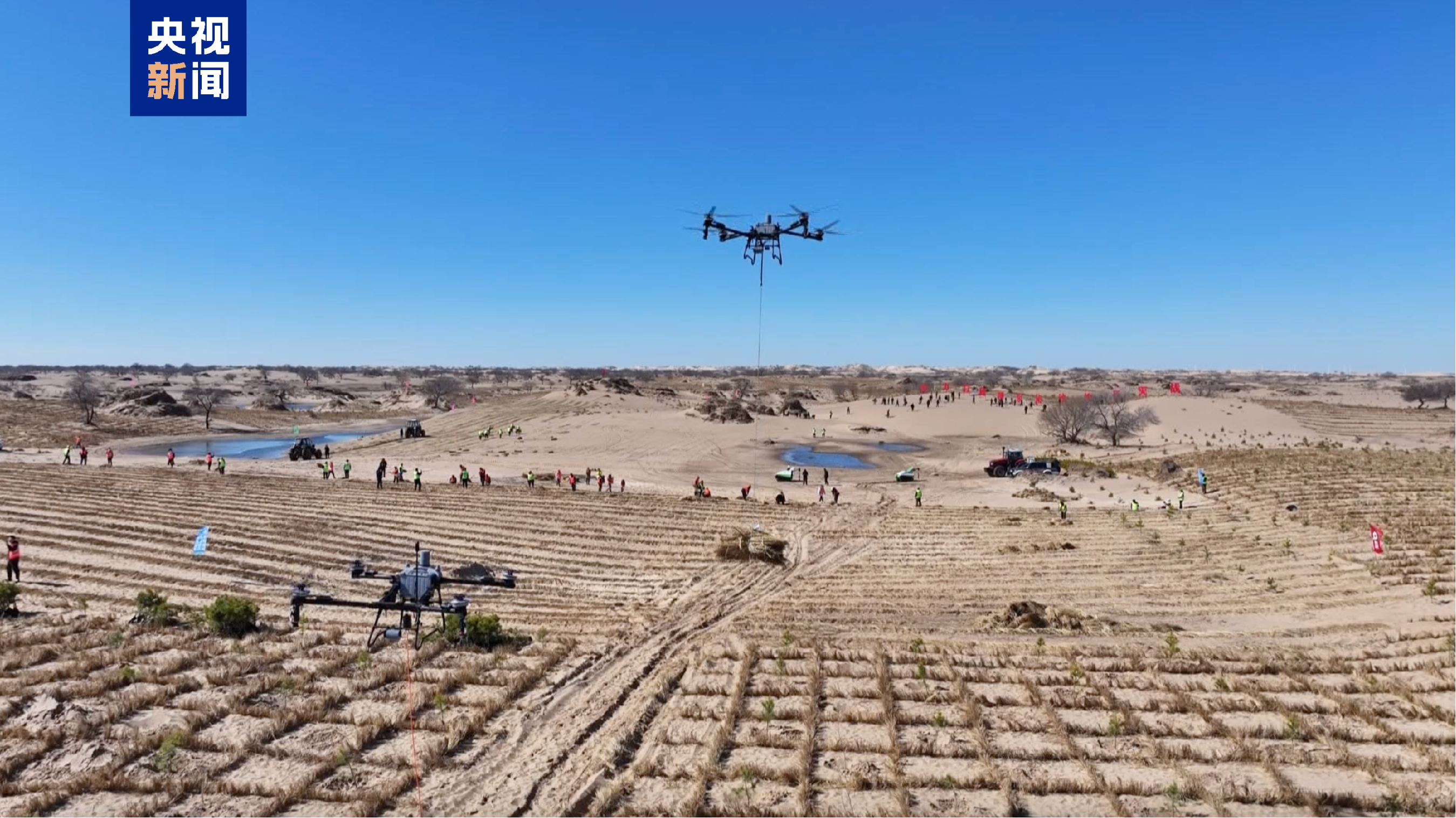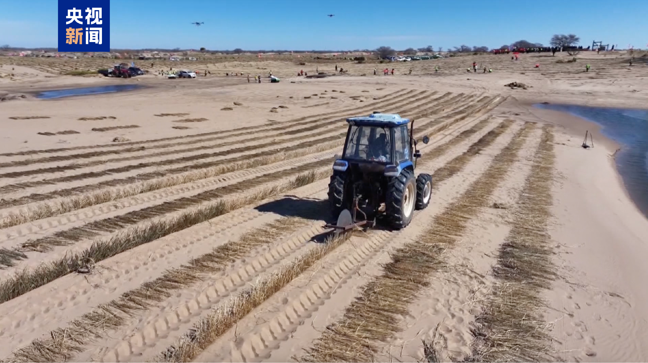 在毛乌素沙地西北缘,鄂尔多斯市鄂托克旗防沙治沙工程队伍扎根沙地,全力开展工程固沙与植被种植工作,工人们抢抓春季有利时节,坚守施工一线,稳步推进项目建设。