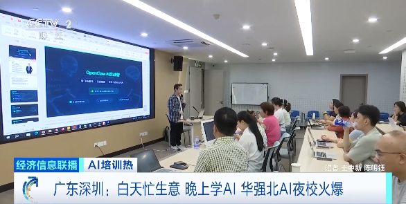 广东深圳华强北街道办事处经济发展办公室副主任 胡华武:我们通过平时走访企业和市场了解到,企业商户对于AI的学习有比较迫切的需求,但是他们大多数是小微企业、个体工商户和夫妻档,白天都是忙着照看店铺、经营企业,没有时间来学习,只有晚上才有空来通过学习提高自己的一些技能。