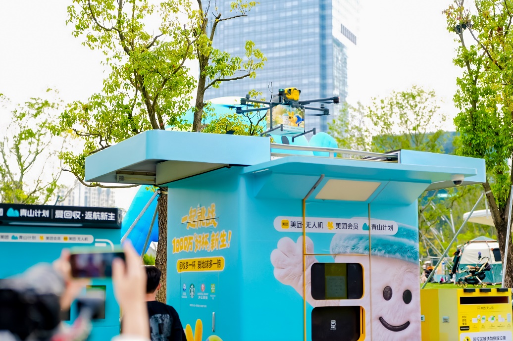 ▲近日,美团青山计划、美团会员与美团无人机联合发起“空投好杯”环保行动(资料图)