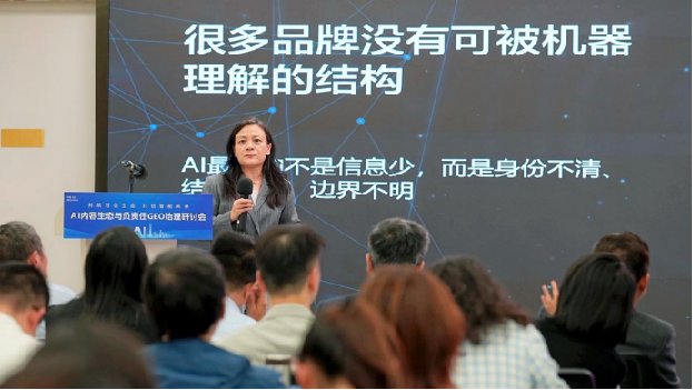 主题演讲环节,中国人民大学新闻学院教授、现代广告研究中心主任王菲提出,在AI时代,品牌竞争正从“被看见”转向“被如何理解”,品牌先被机器理解,再被用户选择,而GEO并非只是让品牌更多出现在回答里,其影响的是品牌进入机器的方式。“品牌的下一阶段,是‘可被机器调用的意义模型’,”王菲表示,“谁能被正确理解,谁才能被持续看见。”