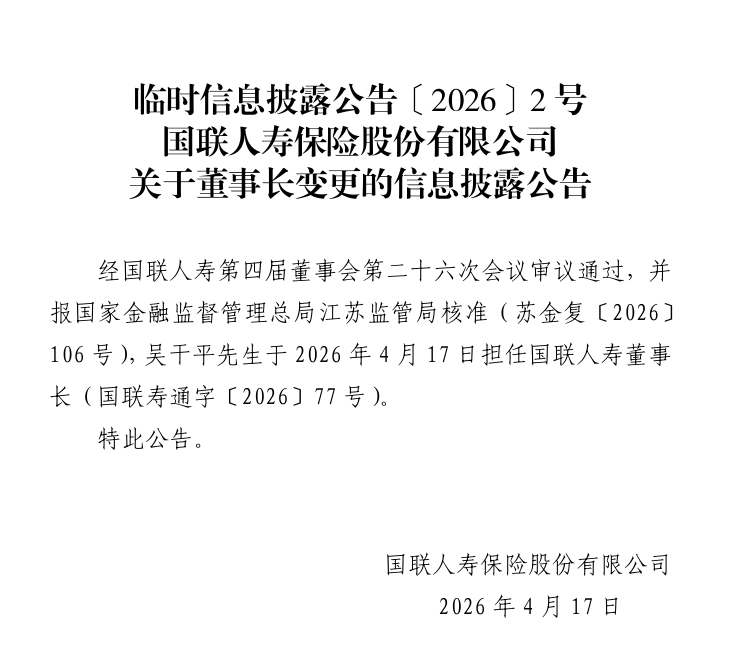 日前,国联人寿保险股份有限公司(以下简称:“国联人寿”)发布公告称,经第四届董事会第二十六次会议审议通过,并报国家金融监督管理总局江苏监管局核准,吴干平于4月17日正式出任公司董事长。这一人事变动意味着国联人寿在经历长达一年的高层空缺后,终于完成了顶层治理架构的重新布局。