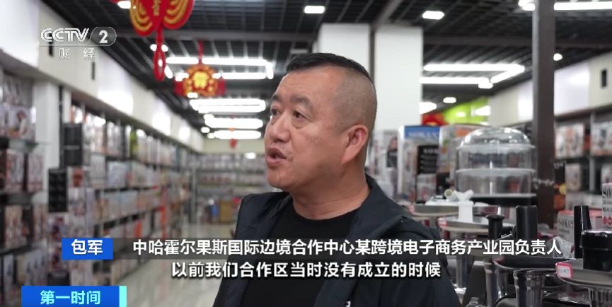 中哈霍尔果斯国际边境合作中心某跨境电子商务产业园负责人 包军:以前合作区没有成立的时候,这只是过货的通道。现在全国各地的客商都到这里开店,上半年就有2000万元人民币的货物发出去了。