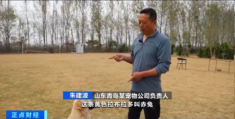 山东青岛某宠物公司负责人 朱建波:这条黄色拉布拉多叫赤兔,它是咱们中国比赛的一条冠军犬,身价应该在80万元到100万元之间。它繁育的后代售价通常是在几万元。