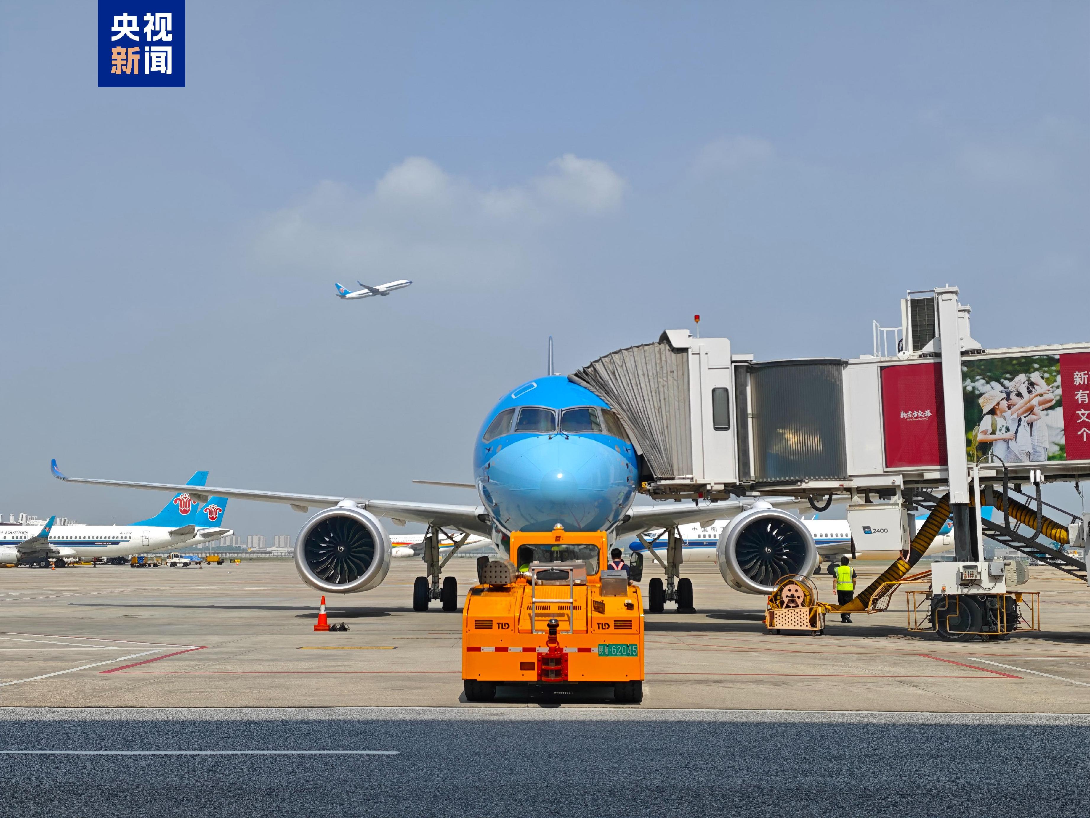 经济观察网 据央视新闻客户端消息,4月26日上午,搭载144名旅客的南航“大美湾区号”CZ3813航班,从广州白云国际机场起飞,随后平稳降落在合肥新桥国际机场,缓缓穿过象征民航最高礼仪的“水门”,标志着南航国产大飞机C919广州往返合肥新航线顺利开通运行,合肥也成为C919商业通航的第23座城市。国产大飞机将进一步助力粤港澳大湾区城市群和长三角城市群的往来。