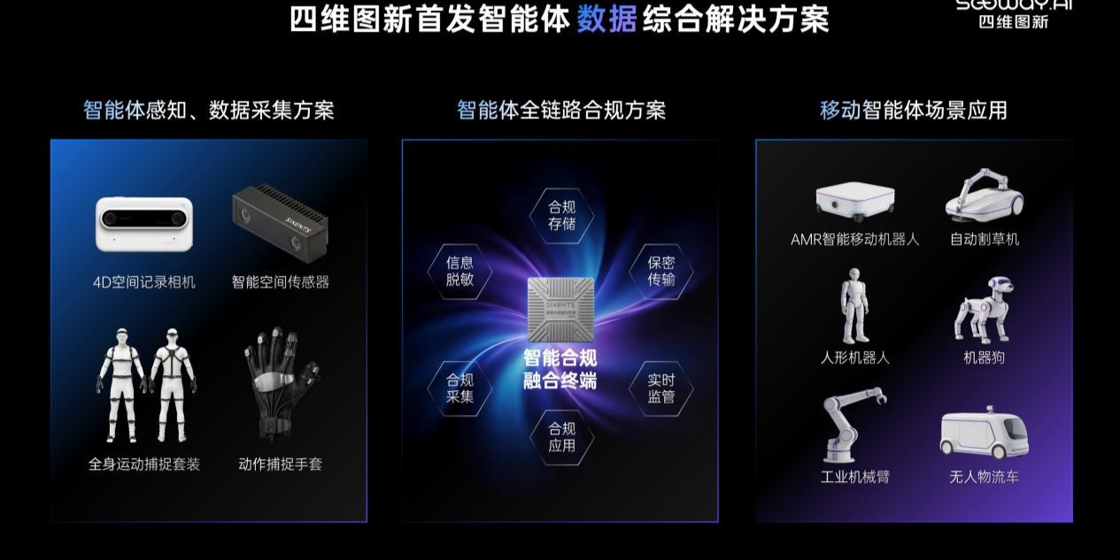 四维图新智能体数据综合解决方案构建“精准数据与合规、端侧算力、智能体感知与采集、智能体移动与交互”四层架构,已落地人形机器人、工业机械臂、无人车等六大场景,并在亦庄人形机器人半程马拉松中,以高精地图、定位与合规能力支持团队全自主完赛。