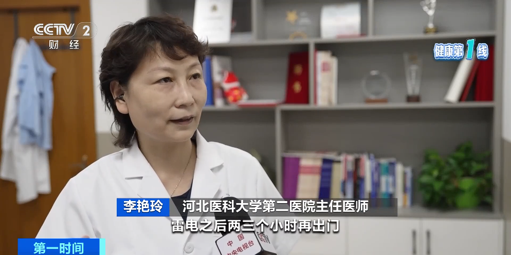 河北医科大学第二医院主任医师 李艳玲:雷电之后两三个小时再出门。这种季节我们建议佩戴严密度比较高的口罩,对于有哮喘症状的朋友要常备鼻喷剂,出现症状的时候一定要马上救治,如果喷完以后效果不明显,还是喘憋,应赶快到正规医院就医。
