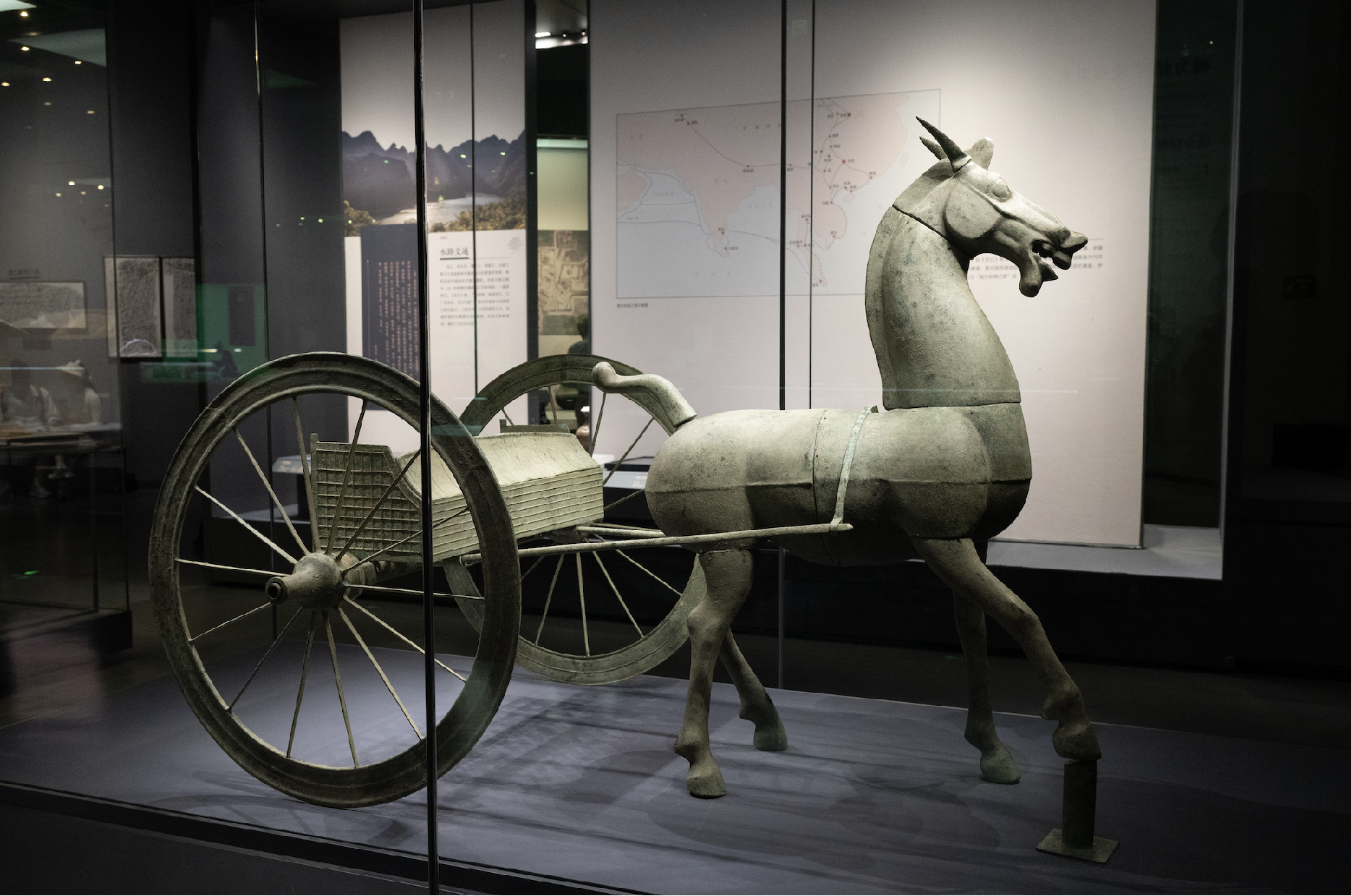 汉武帝经营西南,贵州纳入汉朝版图,中原的丧葬观念与随葬制度随之传入,铜车马这类典型汉墓随葬品出现在贵州,标志着这片山地已深度融入汉代礼制体系。