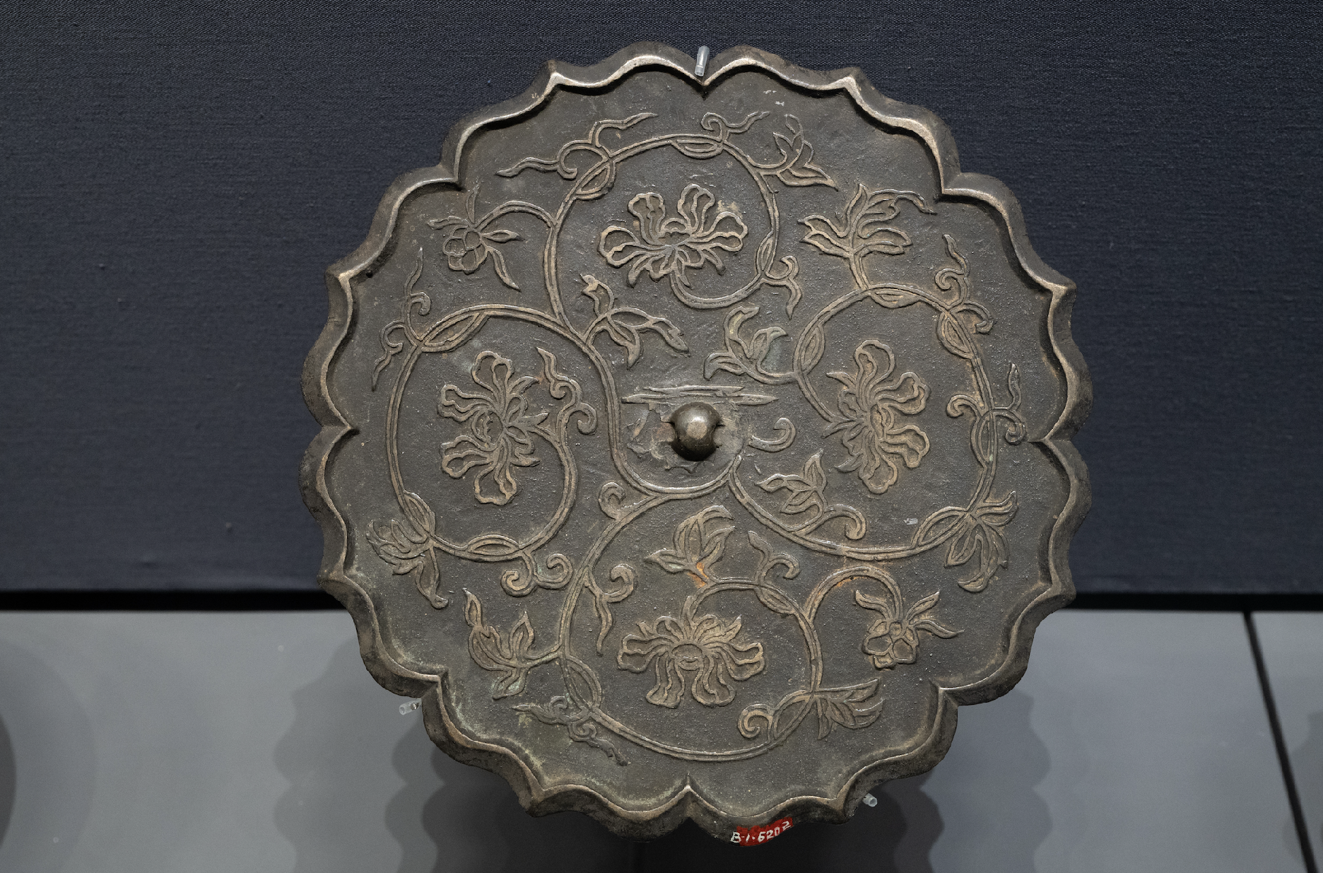 铜镜背面以缠枝花卉为主纹,枝蔓以镜钮为中心向四周延伸,花叶繁密而不失层次,线条纤细流利,是宋代铜镜最常见的装饰主题之一。宋代铜镜整体趋向精巧细腻,与唐代铜镜的厚重富丽风格有明显区别,此镜是这一时期工艺风尚的标准样本。