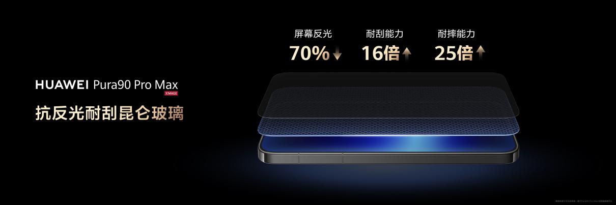 屏幕方面,华为Pura 90系列本身搭载显示效果出色的屏幕,既能做到色彩显示自然生动,也能在室外强光环境激发出超高峰值亮度,确保观看清晰。华为Pura 90 Pro Max更是搭载抗反光耐刮昆仑玻璃,可降低屏幕70%反光,进一步提升了户外环境下的可视性。