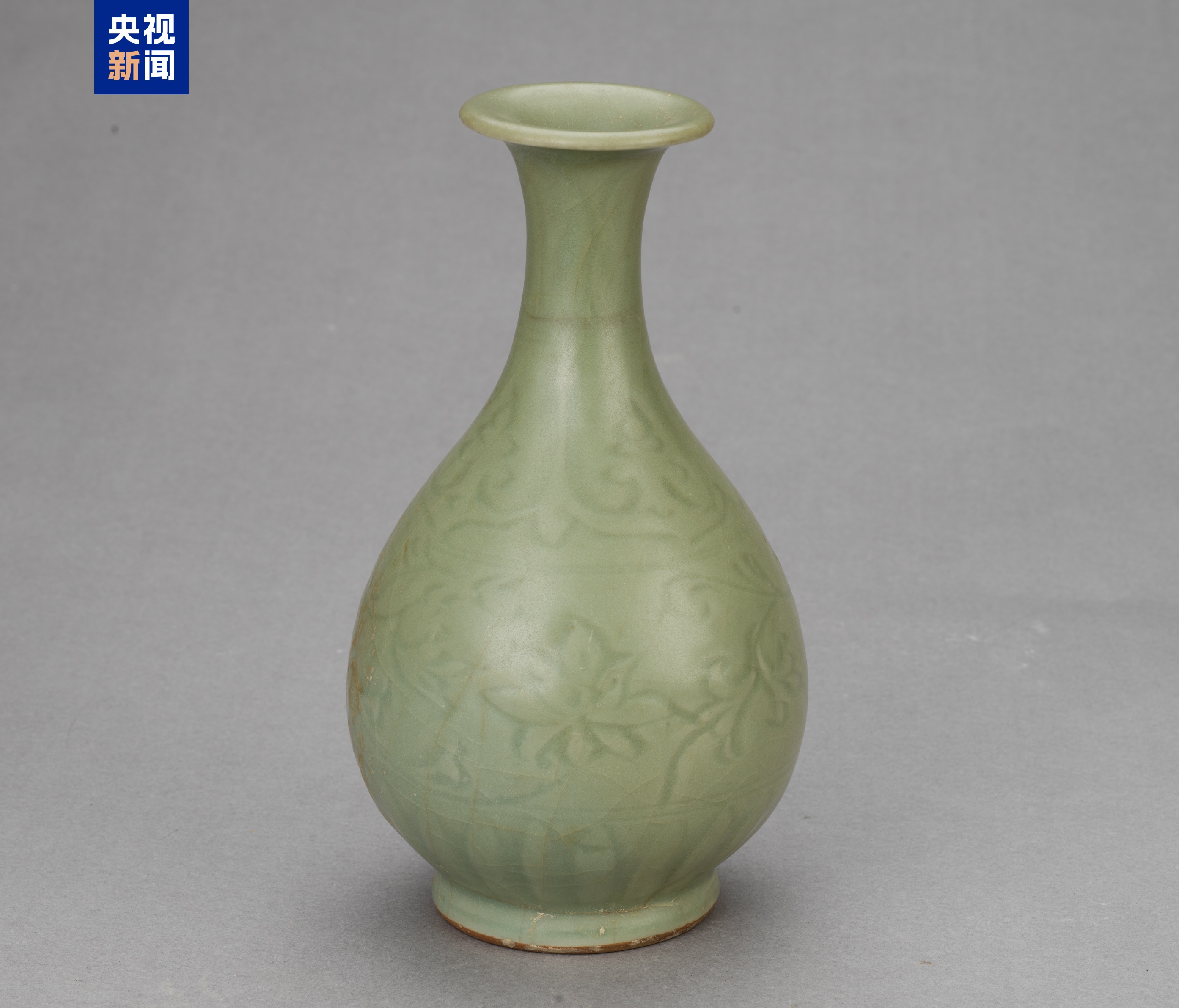 龙泉窑青釉划花缠枝莲纹玉壶春瓶