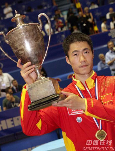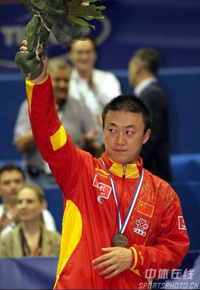 当地时间5月27日,在第49届世界乒乓球锦标赛男子单打决赛中,中国选手王励勤以4比3战胜队友马琳,卫冕男单冠军,马琳再次与冠军擦肩而过。