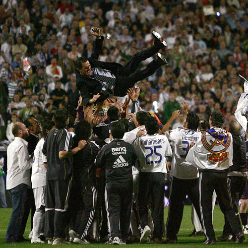 联赛变强了,皇马本身实力去下降了,这样的球队又如何夺冠的呢?卡佩罗自然有他的一套,时代不同了,意大利人也在适应时代的变化和发展。他抓住西甲球队体能和注意力的弱点,采用“磨”的功夫打起了太极拳。这种打法要建立在队员拥有充沛体能的基础上,其次他接受了西班牙媒体、球迷的建议逐渐开始使用边锋,修正确立 罗比尼奥和贝克汉姆在队内的位置,最后他还成功利用卡尔德隆和球员的矛盾整合了更衣室关系。当然,不能否认的一点还有皇马夺冠也有巴萨发挥欠佳以及运气的因素。