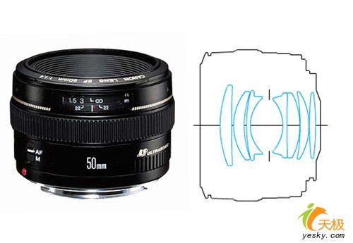 佳能EF 50mm F1.4 USM采用6组7枚镜片结构,内含8枚光圈叶片,最小光圈为F22。最近对焦距离是0.45m,放大倍率为0.15X,镜头孔径为58m。超声波马达驱动,使对焦速度快捷且安静。具有全时手动对焦功能。镜头尺寸50×74mm,重量为290g。下面是台湾一网站的网友为了对比两款镜头而拍摄的两张样张。