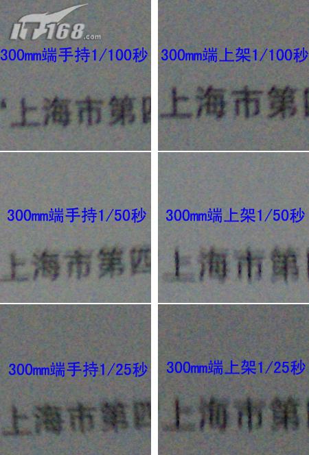 在300mm端,A100的机身防抖功能可以保证1/100秒的快门手持拍摄不会损失图像细节,对于更低的快门速度则无能为力,此时A100的防抖能力仅相当于1.5档的安全快门速度。