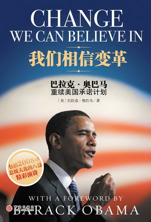 如果你想对2009年粉丝最多男主角大热门的奥巴马作下功课,那么有一本书也许是你非读不可的,这就是在奥巴马当选当天解密的《我们相信变革》(Change we can believe in),这本书包含了奥巴马的未来四年的施政纲领以及他征服了亿万人并被盛赞为可以与《独立宣言》相媲美的著名演讲。