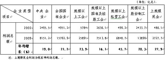 4、从企业利润看:国有企业获得利润总额较大,民营企业所获利润的增长速度较快。私营工业企业利润总额与国有及国有控股工业企业接近,但加上股份制工业企业中的私营控股工业企业,全部私营及私营控股工业企业的利润总额可能已大大超过国有及国有控股工业企业。