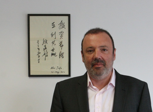 一进办公室,我就看到在Alexakis先生办公室的墙上挂上了中远集团CEO魏家福船长的书法,上面写着“投资希腊,共利共赢”,落款的时间是五月二十日。“这是魏船长的“真迹””,Alexakis先生说。