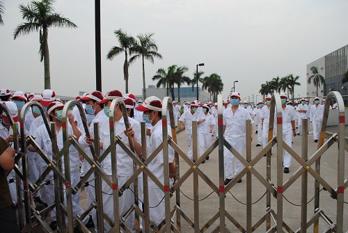 他们说,干到3年的老员工很少,今年一过年就有800多老员工辞职了,(工厂)一下又招到7、800人,你能拿它怎么样?招的大多是学生,走的都是老员工,受不了了。