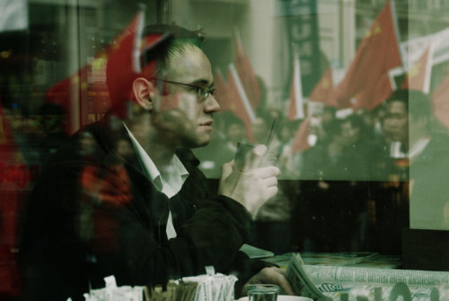 窗外招展的红旗和屋内的安静形成强烈的反差。