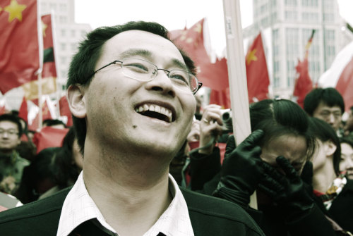 在游行队伍中,有人洋溢着笑容,有人激动的哭泣。无论什么表情,都表达同一种情感——对祖国的热爱。