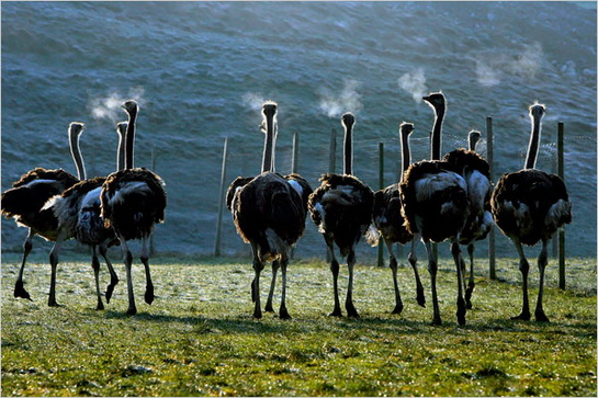 瑞士,来自南非的鸵鸟正在适应这里与家乡截然不同的气候。看看鸵鸟嘴里冒出的白气,这可并不常见。