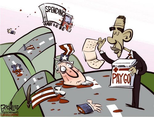 “偿还掉你所花去的钱,这是一种最基本的常识。或许,这就是为什么,在华盛顿,它变得如此稀缺的原因。”6月9日星期三,语出巴拉克奥巴马。他正在督促国会通过一项新的“量入为出”(pay-as-you-go,PAYGO)计划。而归功于它,新增的花销,将不再是通过增加税收或者减少开支来获得。通过遵循同样的原则来指导“负责任的家庭管理预算”,奥巴马说,美国人将能够把这个国家从“非常深的洞穴”中给挖出来。而在过去,正是那种“不顾后果的财政政策,将我们投向了那样的境地”。