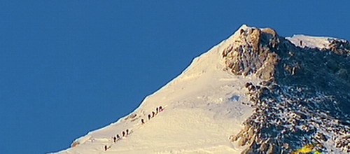 (2008年5月8日,奥运火炬正向珠峰峰顶挺进 5月8日清晨,登山队员在金色的阳光中向峰顶冲击(视频截图)。当日凌晨,北京奥运圣火珠峰传递登山队从海拔8300米的突击营地出发,向着珠峰峰顶冲击。目前,登山队已接近峰顶。)