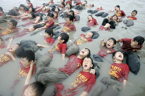 韩国小学生在安山 Daebu 的新兵训练营,很多孩子在喊“妈妈”