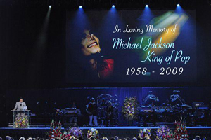 洛杉矶当地时间7月7日周二上午10点钟(北京时间7月8日周三凌晨1点),流行天王迈克尔-杰克逊的葬礼和公众悼念仪式在洛杉矶的“森林草坪”公墓举行。悼念仪式地点则是斯台普斯中心。