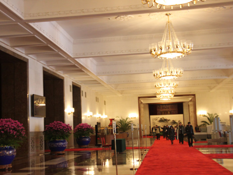 作为两地的举办场所,人民大会堂成了最近我们记者天天跑的地方。这个对于普通人显得即神秘又熟悉的地方,也成了最近记者的镜头捕捉的一个焦点。人民大会堂的三楼是举行大型记者会的地方,最开始它的名字叫三楼中央大厅,后来记者根据它的特点给它取了一个新名字叫金色大厅,如今这个名字已经为众人所知。
