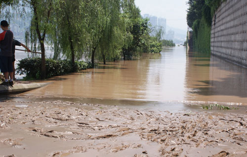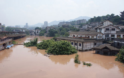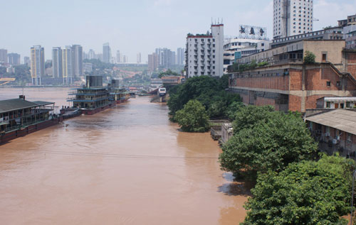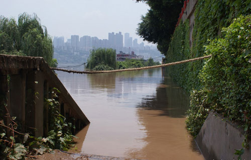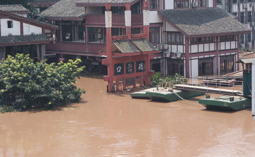 被洪水吞没的古镇磁器口 记者 张晓晖/摄