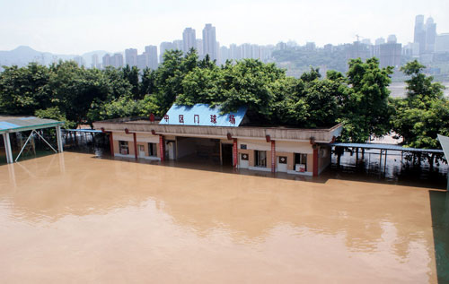 7月20日中午,重庆渝中区门球场已经被洪水淹没 记者 张晓晖/摄