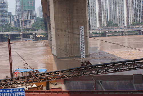 距离桥墩上的最高水位线已经不远 记者 张晓晖/摄