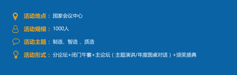 在此背景下,国内最具影响力的财经媒体-《经济观察报》联合国内首档记录产品品质和品牌建设的大型电视纪实类栏目-CCTV发现之旅频道《品质》,于2015年共同发起第一届“中国制造高峰论坛暨品质中国评选”,活动紧跟国际最新形势,汇聚行业优质资源,旨在打造中国制造最为顶级的交流平台,同时通过“品质中国评选”以期推动中国制造向中国创造转变、中国速度向中国质量转变、中国产品向中国品牌转变。