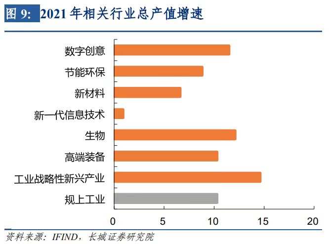 上海工业战略性新兴产业发展早,增势强,产业转移与升级成效显著。上世纪九十年代,上海便提出发展电子信息、汽车等六个重点工业行业。近年上海不断进行劳动密集型、资源密集型、环境损耗型产业外移,成效显著,当前上海当前已经形成了电子信息产品、汽车、石油化工及精细化工、精品钢材、成套设备和生物医药制造业这六大重点工业行业。近年来,随着新兴产业的快速发展,上海涌现出了一批具有支柱潜力的新动能产业。2021上海市新能源、高端装备、生物、新一代信息技术、新材料、新能源汽车、节能环保、数字创意等工业战略性新兴产业完成工业总产值13930.66亿元,同比增长8.9%,占全市规模以上工业总产值比重达到40.6%。