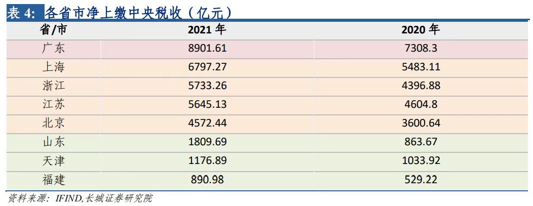 上海市财政实力较强,是中央财政的重要支撑。2020年到2021年,全国仅广东、上海、浙江、江苏、北京、山东、天津、福建8个省市净上缴中央税收(上缴中央税收和中央转移支付之间的差额)为正值,实现地方财政对中央财政的正贡献。2021年,上海市净贡献6797.27亿元,位列全国第二。