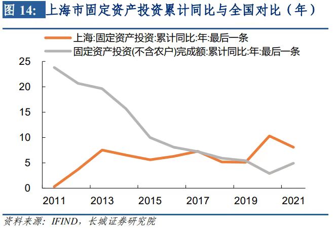 [2] 上海市固定资产投资累计值在2017年后停止公布,因此2017年后固投累计值用累计同比倒推得出。而全国固定资产投资(不含农户)累计值虽然持续公布,但为保持与上海市统一口径,我们也选择从2017年起用累计同比进行倒推。
